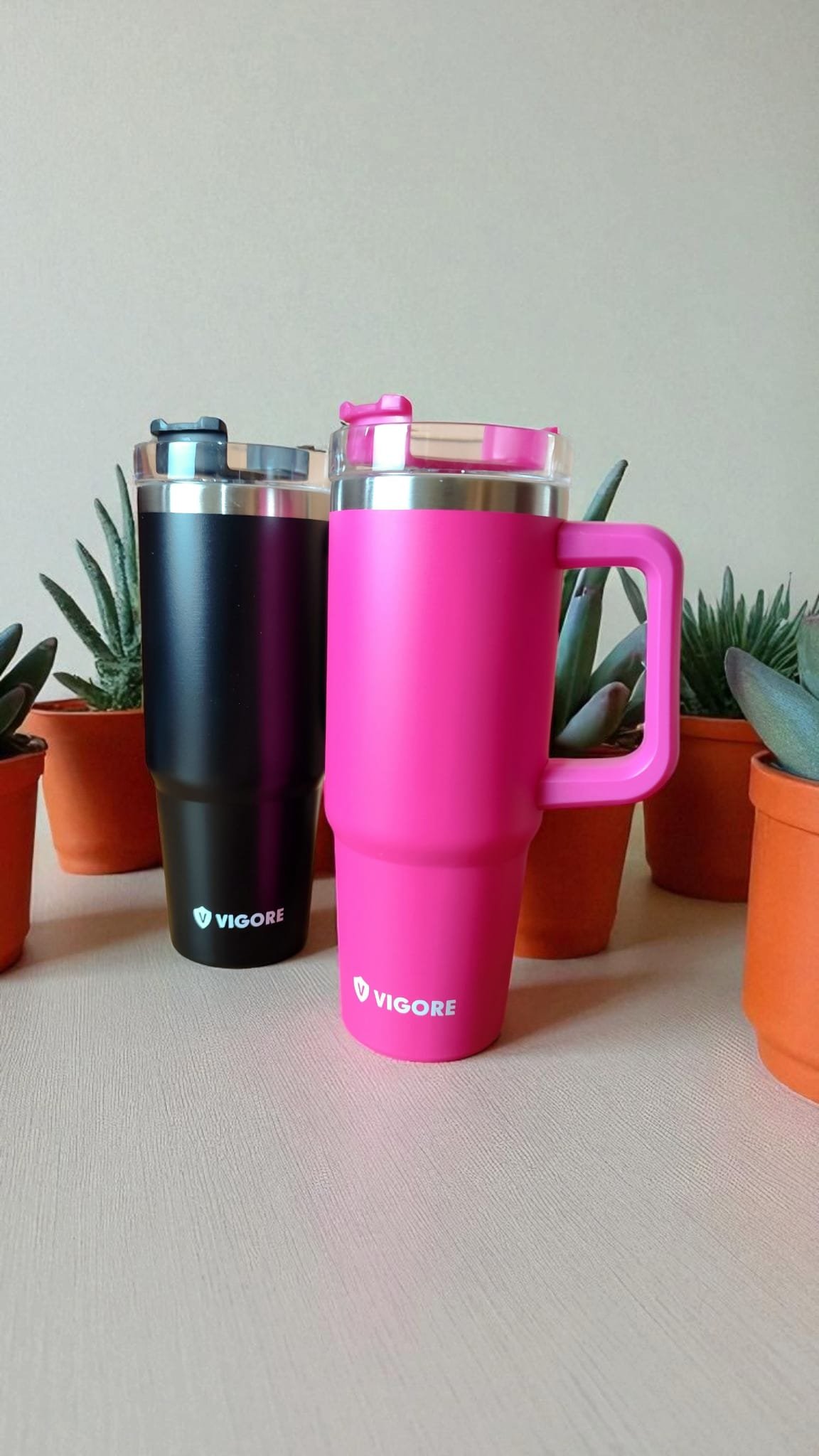 Con tapa hermética, cuerpo resistente y un diseño súper práctico. Perfectos para llevar tu café, té o agua a donde vayas. ¡Elegí el tuyo y llevá tu estilo a todas partes!